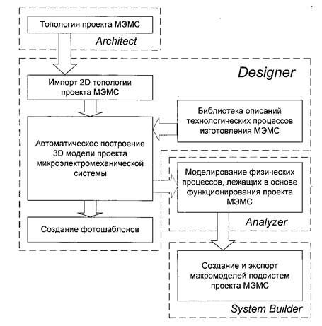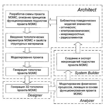 Рис.4.10. Маршрут проектирования микросистем, используемый программой Architect в САПР CoventorWare