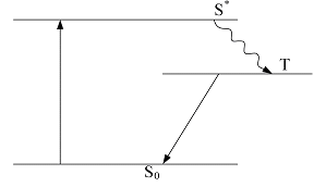 В молекуле, как и в атоме, различные переходы имеют разную вероятность, и существуют определённые правила отбора. Электронные состояния молекулы, как и атома, могут быть классифицированы в зависимости от суммарного спина молекулы. Два электрона, соответствующие одной молекулярной орбитали, имеют антипараллельные спины. При переходе одного из этих электронов с основного энергетического уровня на более высокий антипараллельная ориентация спинов обычно сохраняется. Такое возбуждённое состояние называется синглетным, а переход – синглет-синглетным переходом. Однако возможны случаи, когда электрон при переходе изменяет первоначальную ориентацию спина на противоположную. В результате на высшем энергетическом уровне появляется электрон, не спаренный с оставшимся на основном уровне. Такое возбуждённое состояние называется триплетным. Непосредственный переход из основного состояния в триплетное запрещён, но возможен процесс, изображенный на рис. 1.8: электрон из основного состояния переходит в первое возбуждённое синглетное состояние. Находясь в возбуждённом состоянии, молекула взаимодействует с соседними молекулами и безызлучательно теряет часть своей энергии; в результате этого взаимодействия электрон оказывается на триплетном уровне Т, который является метастабильным, так как переход между триплетным и синглетным состояниями запрещён. Молекула может находиться в таком состоянии довольно долго, но поскольку запрет является не строгим, электрон способен в конце концов перейти с уровня Т на основной уровень.