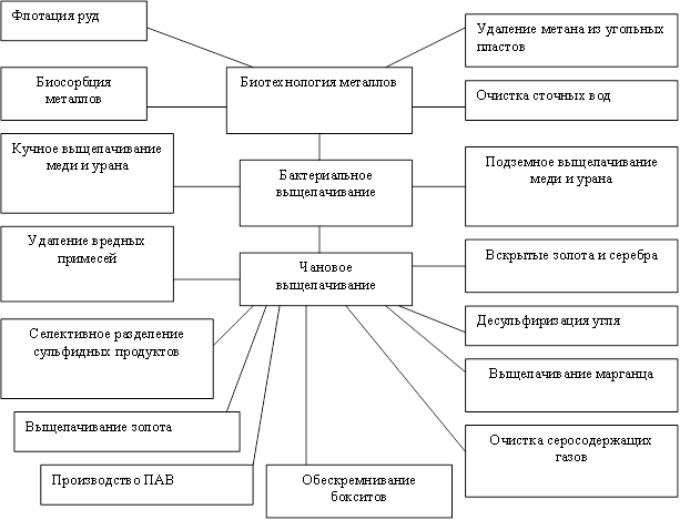 Рис. 2.1. Основные процессы биотехнологии металлов