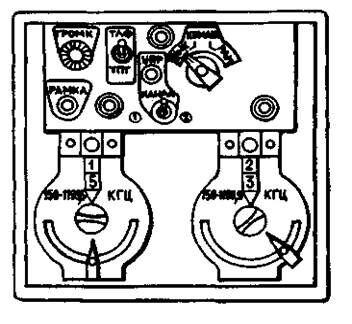 Пульт дистанционного управления предназначен для управления радиокомпасом, а также настройки на заданную частоту. С задней стороны лицевой панели установлена скоба, на которой крепятся реле, врубной разъем, печатная плата с радиоэлементами и два устройства для набора частоты. На лицевой панели ПДУ размещены следующие органы управления (рис. ):