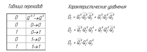 2. Спроектировать последовательностное устройство – счётчик с произвольным порядком счёта на D-триггерах.