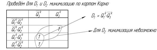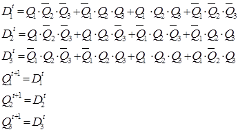 2. построение таблицы переходов счётчика Qt Qt+1. Аргументами в таблице являются значения исходных сигналов Q3t, Q2t,