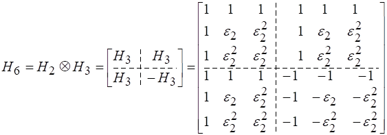 Матрица ТЧП строится так же как матрица преобразований Фурье с одним отличием: место поворачивающего множителя занимает число