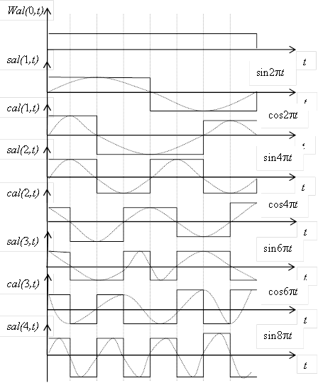 Переменные k и n принимают целочисленные значения (0,1,…,N-1). Переменную k отождествляют с номером функции, а переменную n – с номером отсчета.