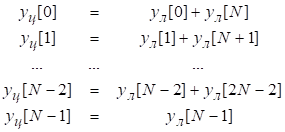 с блоками длиной N, получающиеся в результате добавления N- N1 нулей к h. Следовательно, выход каждой циклической свертки можно записать как