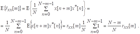 На практике имеется последовательность ограниченной длины x[n], n=0,…,N-1, поэтому вычисление по (120) невозможно и в качестве оценки корреляционной функции принимается величина