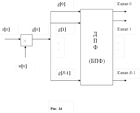, который вычисляется с помощью R-точечного ДПФ (БПФ), (R ³ N) (рис. 14).