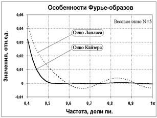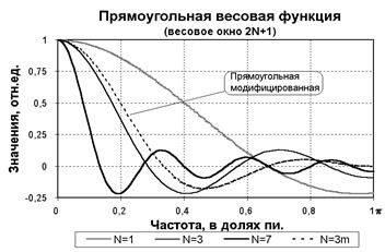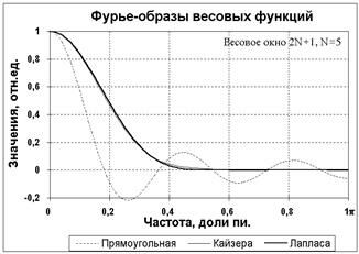 Попутно заметим, что достаточно гладкие частотные характеристики весовых функций позволяют использовать их в качестве сглаживающих (низкочастотных НЦФ).