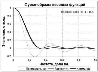 Рис. 3.2.4. Частотные функции весовых окон. |