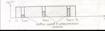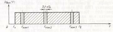 ), соответствующие ТФ каналам, в которых проводят измерения. В зависимости от числа передаваемых ТФ каналов число вырезанных полос колеблется от 3 до 5. Спектр сигнала на выходе передающего устройства ИПП 2 (в точке А) приведен на рисунке 11.6.