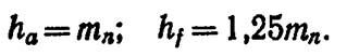 Делительная окружность делит зуб на головку и ножку, высота которых соответственно обозначается ha и hf. При этом принимают ha = mt, hf = 1,25 mt, откуда высота зуба h = ha + hf= 2,25mt. Разница в высоте ножек зубьев одного колеса и высоте головок зубьев другого необходима для образования радиального зазора с: