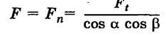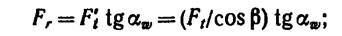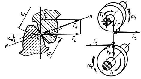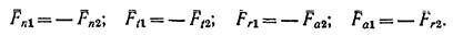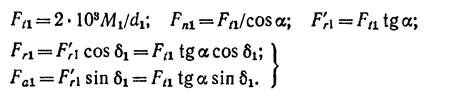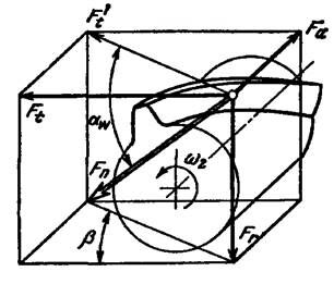 По нормали к зубу действует сила Fnl, которую разложили на Fn и F'r. В свою очередь, F'r1 разложили на Fa1 и Fr1. Запишем