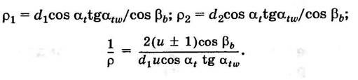 Для колес с внутренним зацеплением эти соотношения получают следующие значения: