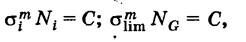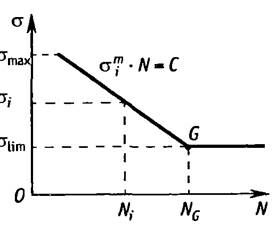 При напряжении σ ≤ σlim передача может работать практически неограниченное время, при σ > σlim – ограниченное время. Если при расчете суммарное число циклов Ni будет меньше NG, то напряжение можно повысить до σi (см. рис. 3.21 – штриховые линии). Наклонный участок кривой усталости описывают степенной функцией. Для точек σi и G
