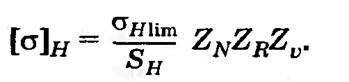 называют коэффициентом долговечности. Экспериментами установлено, что предел выносливости также зависит от шероховатости поверхностей и окружной скорости, учитываемых коэффициентами ZR, Zv. Формула для определения допускаемых контактных напряжений имеет вид