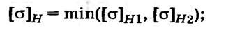 Напряжения рассчитывают для шестерни [σ]H1 и колеса [σ]H2. Допускаемые напряжения для передачи принимают для прямозубых передач меньшими из двух