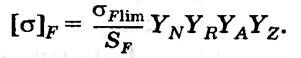 Эту зависимость используют для определения допускаемых контактных напряжений [σ]H и напряжений изгиба [σ]F. Разделив обе части уравнения на коэффициент безопасности SH, получают допускаемое контактное напряжение для числа циклов Ni. Величину