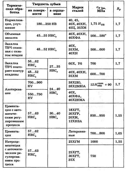 * Числитель для зубчатых колес с однородной структурой, включая ТВЧ со сквозной закалкой; знаменатель для зубчатых колес азотированных, цементированных и нитроцементированных с нешлифованной переходной поверхностью.