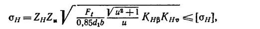 Здесь [σ]Hmin – меньшее значение допускаемого напряжения из двух возможных (шестерня, колесо).