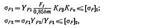 Расчет ведут по меньшему из двух отношений [σF] / Yp для шестерни и колеса.