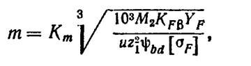 метру, принимают ψbd = 0,3...0,6 при соблюдении условия ψbd = b/Re ≤ 0,3 и b≤10те; М2 — вращающий момент на колесе, Н*м; [σF] -до пустимые напряжения при изгибе, МПа; m — средний модуль, мм.