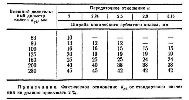 Конические передачи редукторов выполняют по ГОСТ 12289—76, который регламентирует u, de2 и b (табл. 4.18).