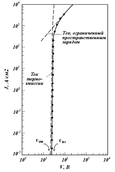 С дальнейшим увеличением прямого напряжения в связи с уменьшением высоты потенциального барьера прямой ток через барьер будет возрастать, как в обычных выпрямительных диодах (инжекционная ветвь).
