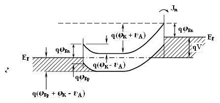 При приложении к диоду прямого напряжения (рисунок 3.22, б) плотность тока из полупроводника станет равной