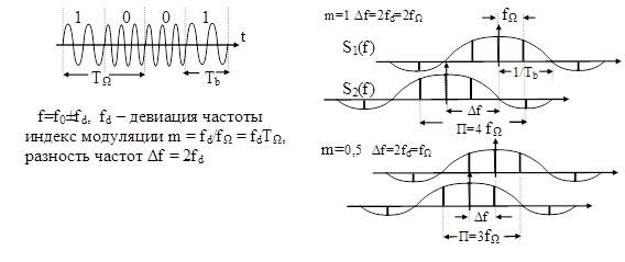 При демодуляции сигнала с использованием корреляционного приемника сигналы разных частот должны быть ортогональными. Условие ортогональности: m - целое число при некогерентной демодуляции, m = 0,5 при когерентной демодуляции.