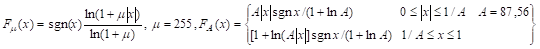 Чтобы отношение сигнал/шум не зависело от уровня сигнала, характеристика усилителя F(x) должна иметь крутизну dF/dx=k/x. Этому требованию соответствует логарифмическая характеристика. Применяют разные аппроксимации логарифмической характеристики, непрерывные и кусочно-линейные. В США и Японии применяют μ-закон, в Европе –А- закон: