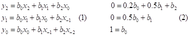 Решение системы (2) b0=1, b1= - 0.5, b2=0.05.