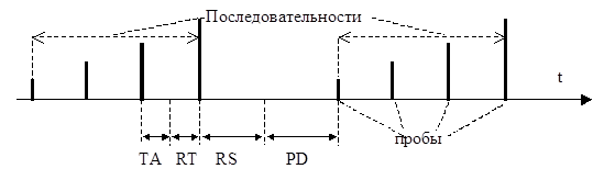 RS, RT - cлучайное время, ТА – постоянный интервал, PD - случайное время, определяемое MS с вероятностью, заданной BS с учетом загрузки сети. Число проб и последовательностей задает BS. Каждая проба начинается в начале определенного временного интервала, передается по каналу R - ACH и состоит из преамбулы, необходимой для настройки BS на MS, и информации о параметрах MS.