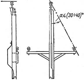 ВЛ «У» (35 – 110)кВ на деревянных опорах, как правило, не защищаются тросами, за исключением подходов к РУ станций и подстанций. Отдельные места с ослабленной изоляцией (металлические и железобетонные опоры) должны защищаться трубчатыми разрядниками. Тросы на деревянных опорах «П» и «АП» - образного типа должны быть электрически соединены между собой перемычками; спуски от перемычек должны быть осуществлены по каждой стойке опоры.
