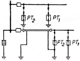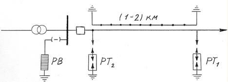 При отсутствии трубчатых разрядников с требуемыми параметрами вместо разрядников РТ1 и РТ2 в рассмотренных выше схемах допускается установка защитных промежутков.