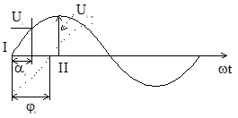 а) включение в момент, когда aк = p/2, U1 = U1m, t = 0