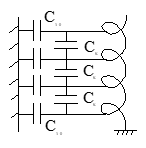 Так как ток протекает только по емкостным связям, то процесс распределения волны сводится к зарядке системы конденсаторов.