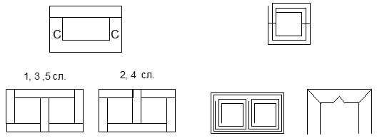 В первом случае емкости с соединены последовательно и ток течет одной и той же величины, так как CAB = CBC = CCD, то получаем равномерное распределение напряжения существует и при установившемся режиме. Следовательно, является наиболее благоприятным(1). Во втором случае весь ток протекает только через первый сверху конденсатор (т.к. xL = ¥)(2), т.е. напряжение падает на первую катушку, а следовательно во много раз больше номинального. Это может привести к пробою первых катушек.