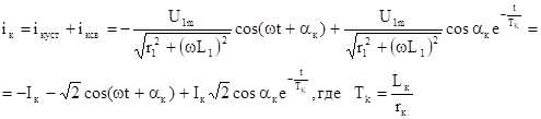 iпер = iсв – переходный, который в момент включения имеет ту же амплитуду что и iуст, но представляет собою апериодическую функцию времени, затухающей по закону апериодической функции с постоянной времени T = L1/r1.