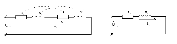 При аварийном коротком замыкании токи во многом превышают номинальный, а ток холостого хода очень мал, поэтому им можно пренебречь. Все напряжения уравновешенны падением напряжения в обмотках трансформатора. Отсюда мы приходим к той же схеме замещения, что и при опытном коротком замыкании.