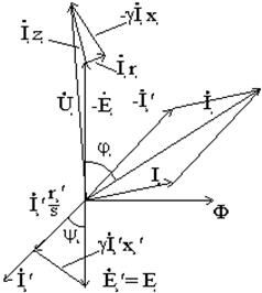Из векторной диаграммы видно, что активная составляющая тока в роторе, а следовательно и активная составляющая тока в статоре изменили свой знак.