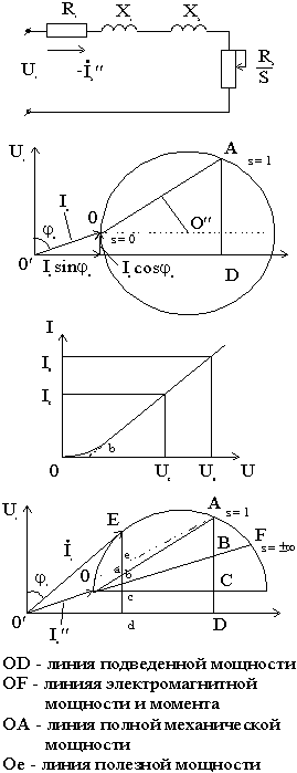 роторной цепи при S = 1¸0. Так как параметры роторной цепи при изменении скольжения изменяются, то геометрическим местом конца вектора тока I не будет окружность, будет представлять собой сложную кривую.