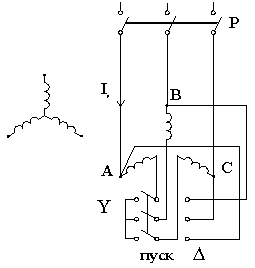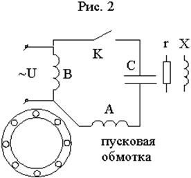 При пуске включается пусковая обмотка и создается асинхронный момент, после разгона ротора пусковая обмотка отключается ключом К.
