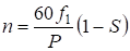 Для асинхронного двигателя частота вращения ротора определяется по формуле
