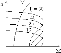 Регулирование изменением частоты происходит плавно. На рис.1 представлены механические характеристики при различных значениях частоты.