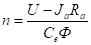 - линейная скорость на окружности якоря, величина