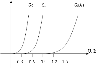 Характер токопрохождения и величина тока зависят от полярности и величины приложенного напряжения. Если «+» подключен к контакту слоя p, а «-» к контакту слоя n, то напряжение на переходе понизится, равновесие между Iдр и Iдиф нарушится и через переход будет протекать прямой ток.