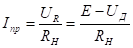 В электрических схемах диоды включаются в цепь в прямом направлении. Е – напряжение источника питания. В практических схемах в цепь диода всегда включается какая-либо нагрузка, например, резистор. Такой режим работы диода называется рабочим. Его расчет производится по известным значениям E, RН и  ВАХ диода. Расчет производится по формуле.