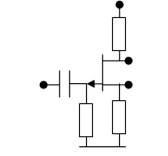 - с общим истоком (подобно общему эмиттеру) которые позволяют получить усиление тока и напряжения и инвертирование фаз напряжения при усилении, имеют очень высокое входное и выходное сопротивления;