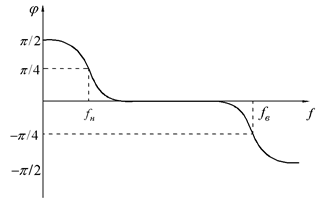 Поэтому второй характеристикой усилителей является фазо-частотная характеристика (ФЧХ), определяющая зависимость угла фазового сдвига от частоты.