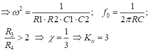 2.баланс амплитуд – произведение коэффициента усиления и коэффициента ОС